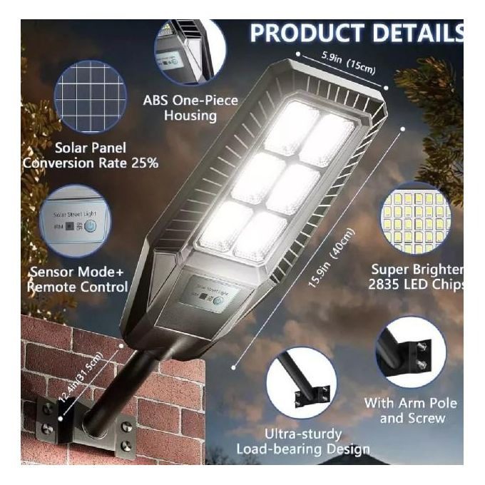 Con su batería de litio de larga duración, su LED ultra brillante y sus sensores inteligentes, esta farola solar se adapta a cualquier entorno: lluvia, polvo, noche o movimiento. Se enciende cuando alguien se acerca y ahorra energía cuando no hay nadie. ¡Así de inteligente!