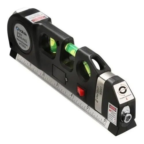 Incluye un metro integrado de hasta 2.5 metros, ideal para mediciones rápidas sin buscar otra herramienta. Además, cuenta con tres burbujas de nivel, lo que te da mayor control y precisión desde cualquier ángulo.