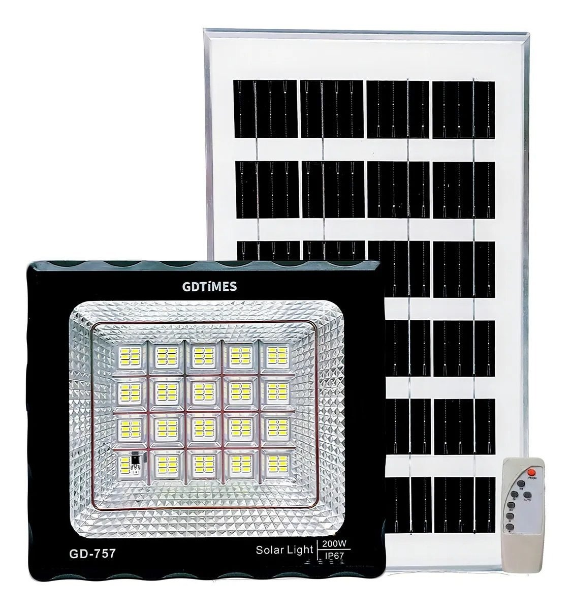 Reflector Solar 200W GDTimes LED Exterior IP66 con Panel y Control Remoto